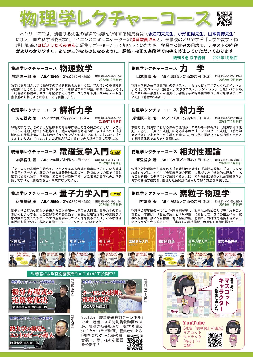 物理学 『一歩進んだ物理数学』2025年11月刊行、2026年1月重版出来!