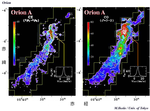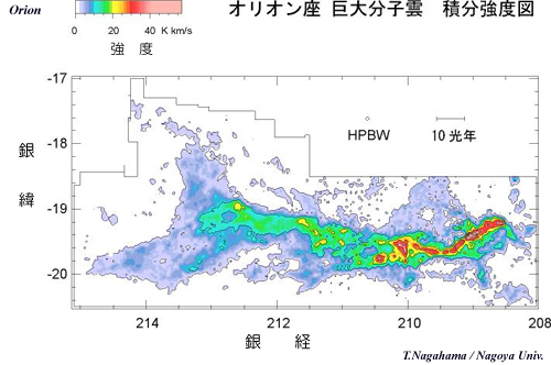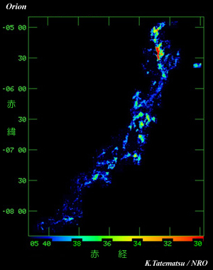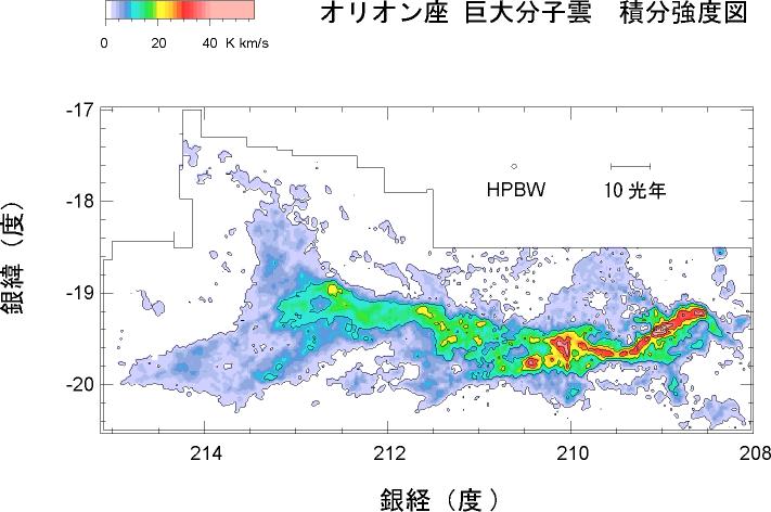 オリオン星雲を国立天文台野辺山45m電波望遠鏡を用いて,