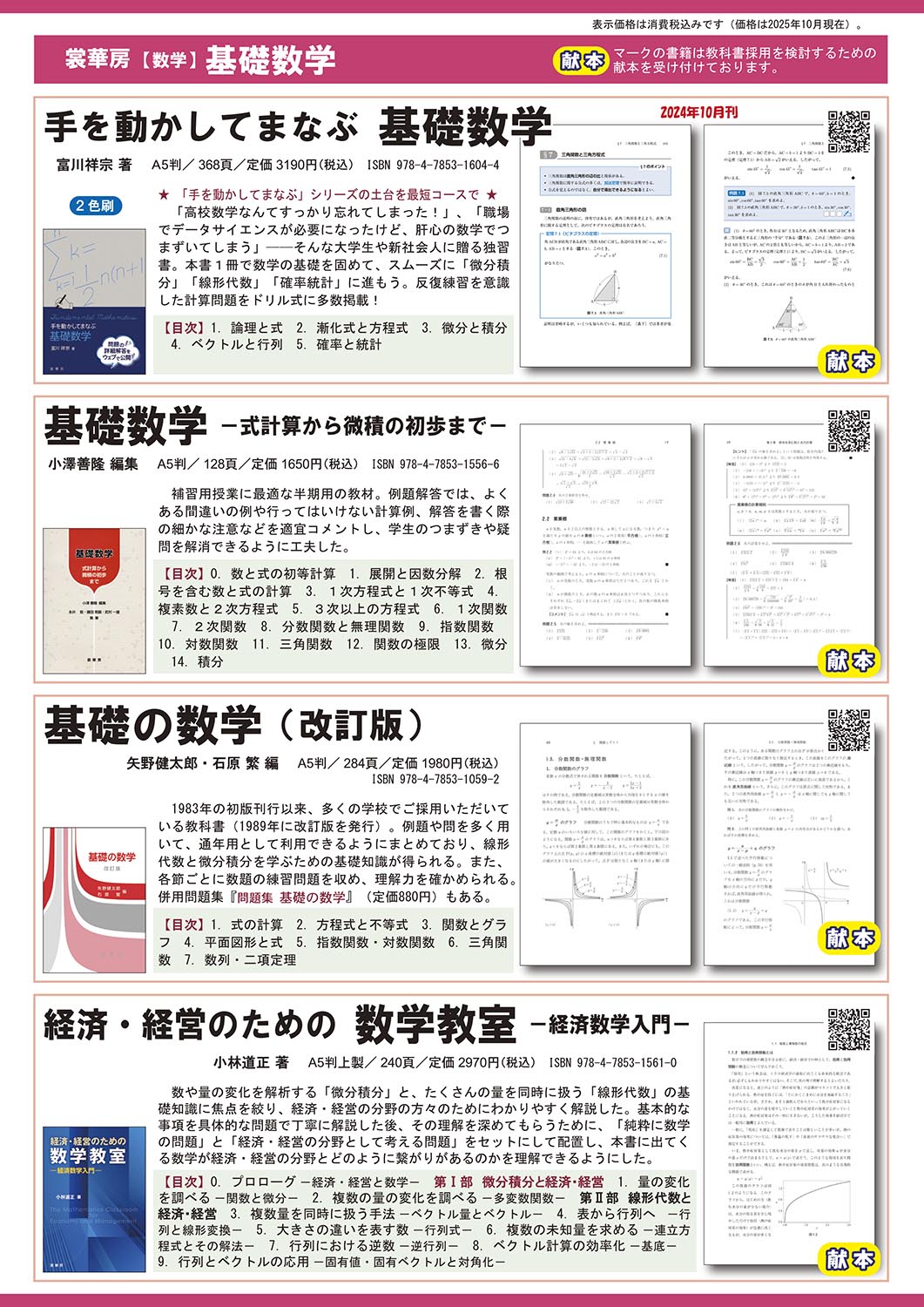 大学・短期大学・工業高等専門学校・専門学校における基礎科目 4分野の教科書を一覧にまとめました.