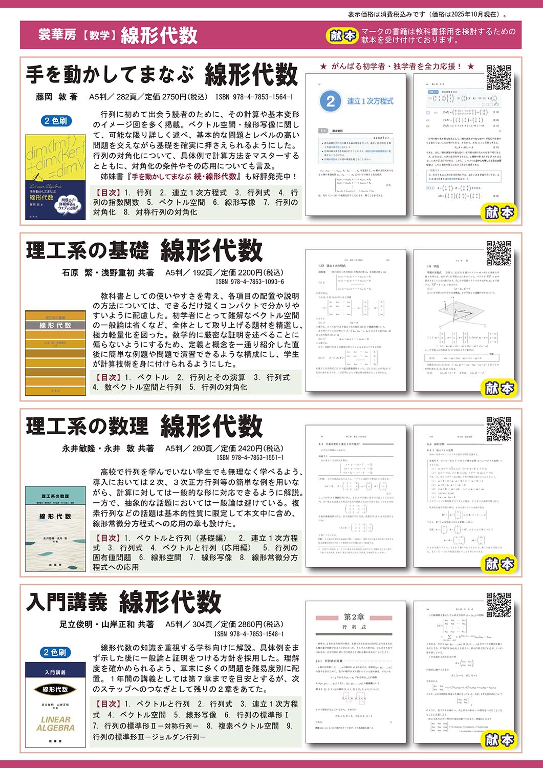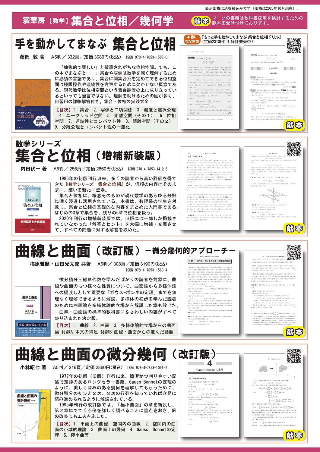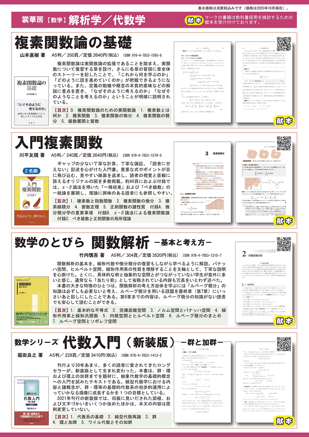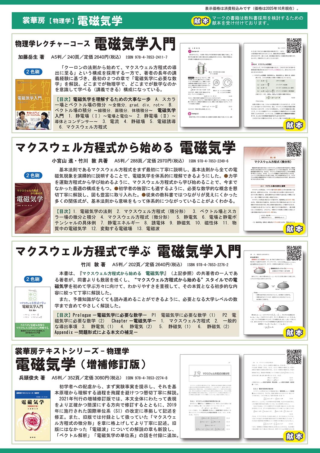 → 講義用 教授資料のご案内 → 小分野別の案内チラシ(New!) → 書籍の訂正表・正誤表