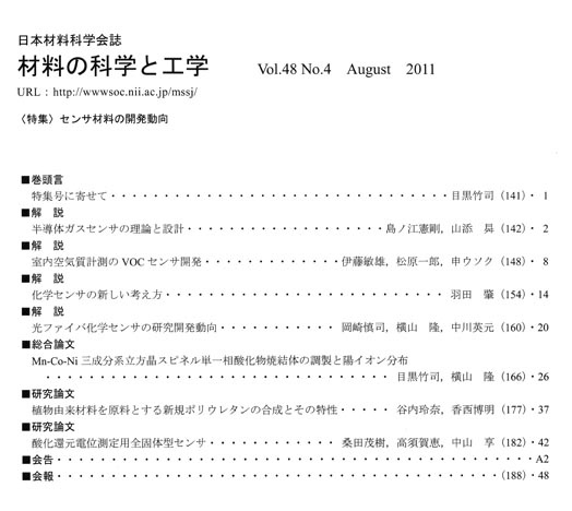 「材料の科学と工学」48巻(2011年)4号 特集:センサ材料の開発動向 ![]() |
