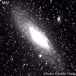 M31は,アンドロメダ銀河として有名な渦巻き銀河(Sb)です. マゼラン雲を除いて,われわれの銀河系に最も近い銀河で, その距離は,およそ230万光年にあります. 明るいので,肉眼でもはっきり見ることができます. | ||||||||||||||