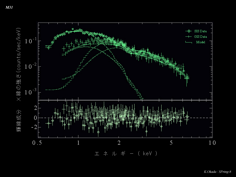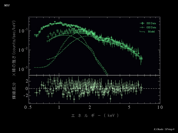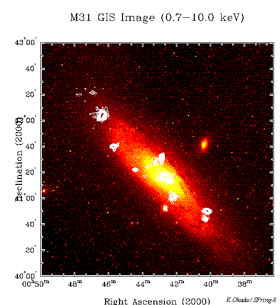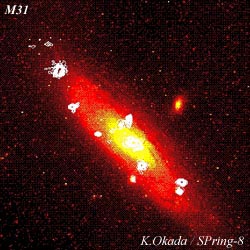 X線で見たM31はいくつかのX線天体がバラバラで存在するように見えています.