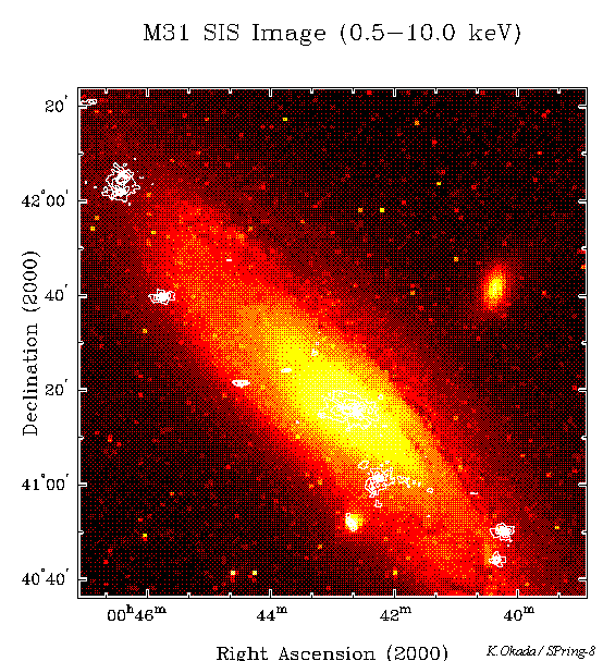SIS検出器で得られたX線の画像を等高線で表したものです.