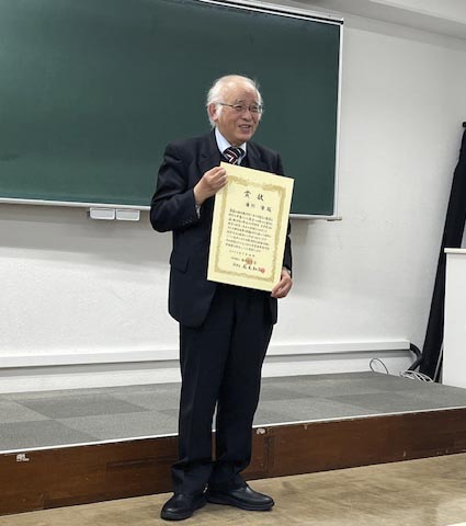 授賞理由は「微分幾何学における幅広く重厚な研究を基盤として、数多くの良書を著し、幾何学を専攻する学部生・大学院生の教育と研究に多大に貢献した。特に、調和写像理論が急速に発展した1990年代初頭に執筆された「変分法と調和写像」は現在も読み継がれ、英訳版も出版された優れた教科書である。また、連続と離散の理論を結び付ける「ラプラス作用素とネットワーク」をはじめとして、数学の工学的応用も視野に入れた書籍も複数執筆している。」などによる功績とのことです(日本数学会のWebサイトより)。